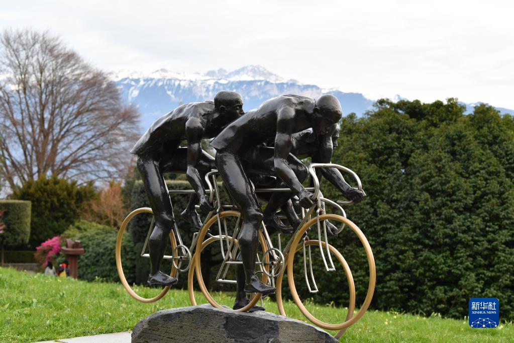这是3月21日在国际奥林匹克公园内拍摄的雕塑。新华社记者 连漪 摄