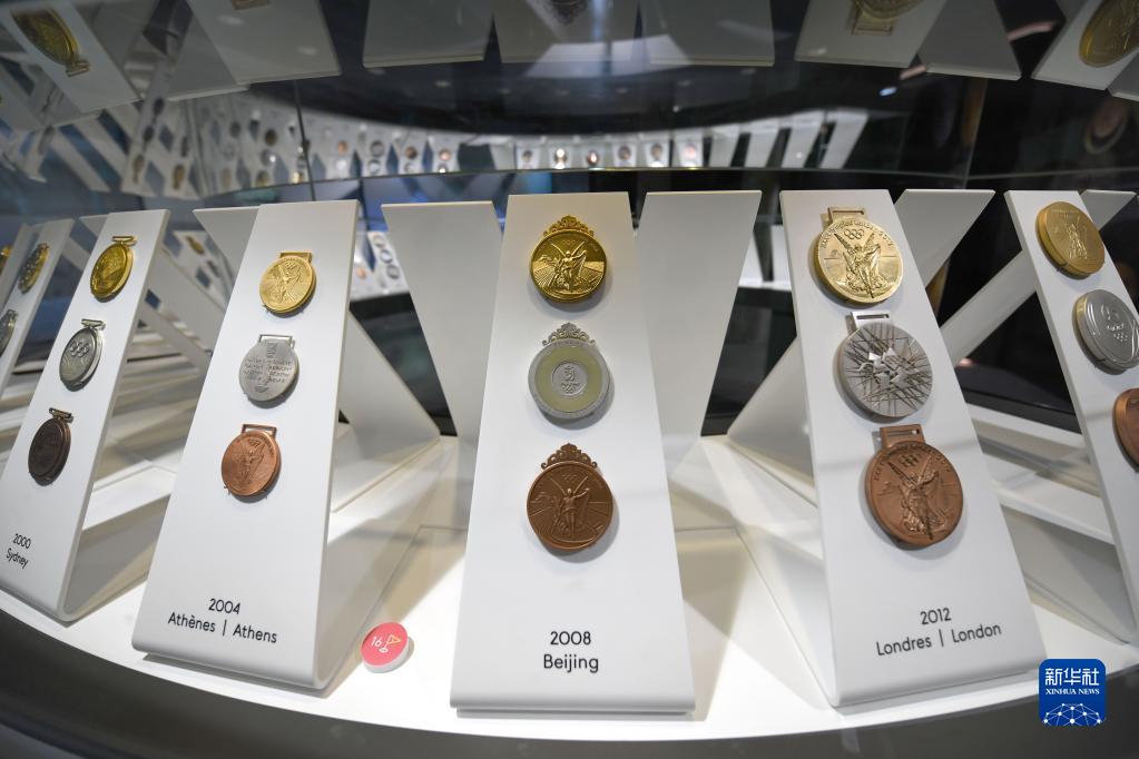 这是3月21日在国际奥林匹克博物馆内拍摄的历届奥运奖牌。新华社记者 连漪 摄