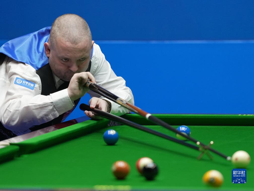 当日,在河北省秦皇岛市奥体中心体育馆举行的第十一届中式台球国际大师赛全球总决赛第四阶段胜部第三轮比赛中,中国选手唐春晓以15比5战胜英国选手加雷斯·波茨。