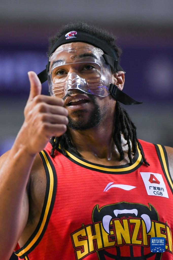 4月3日,深圳马可波罗队球员萨林杰在比赛中向球迷致意。新华社记者 李博 摄