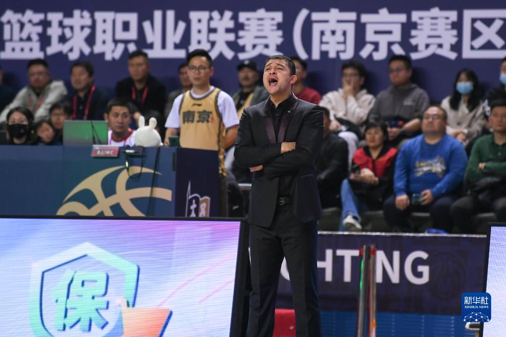 4月3日,南京同曦宙光队主教练西热力江在场边指挥。新华社记者 李博 摄
