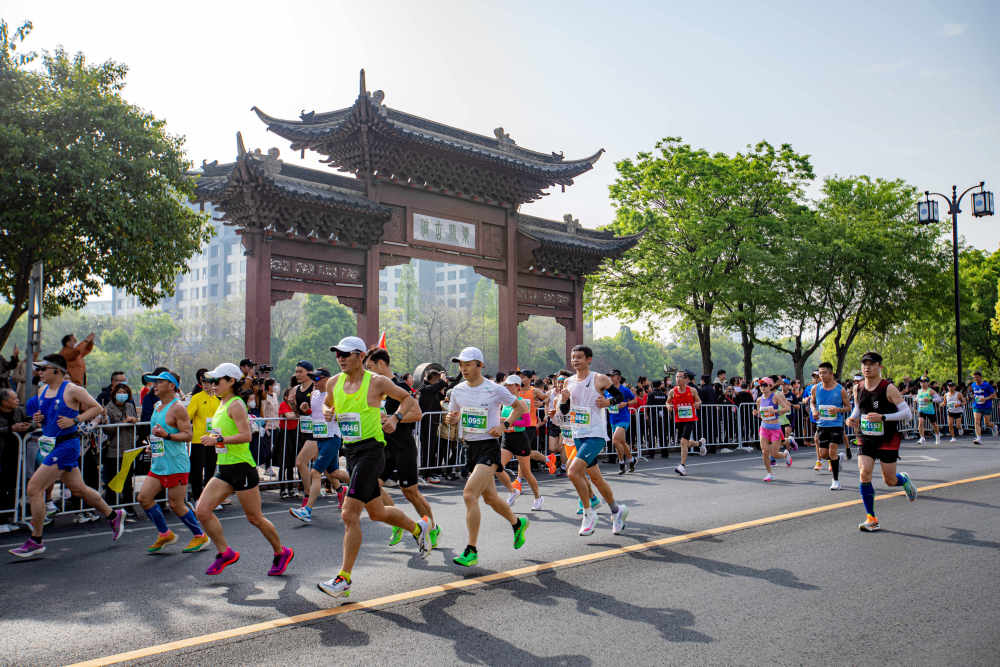 4月16日,选手在2023扬州鉴真半程马拉松赛上。新华社发(任飞摄)