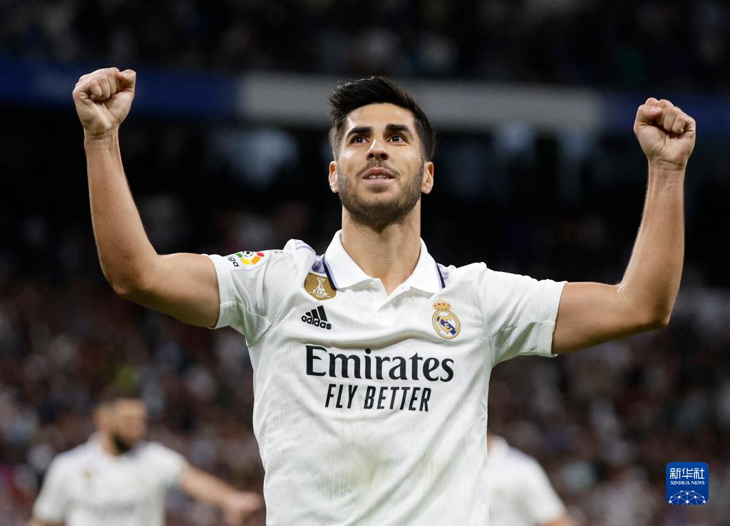 4月22日,皇家马德里队球员阿森西奥进球后庆祝。新华社/路透