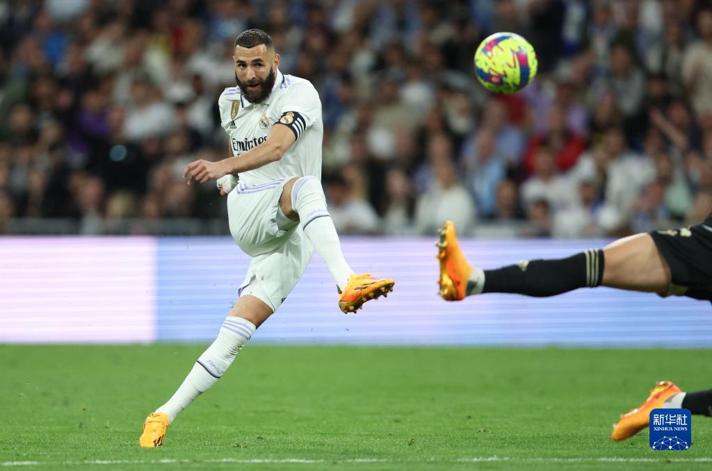 4月22日,皇家马德里队球员本泽马在比赛中射门。新华社/法新