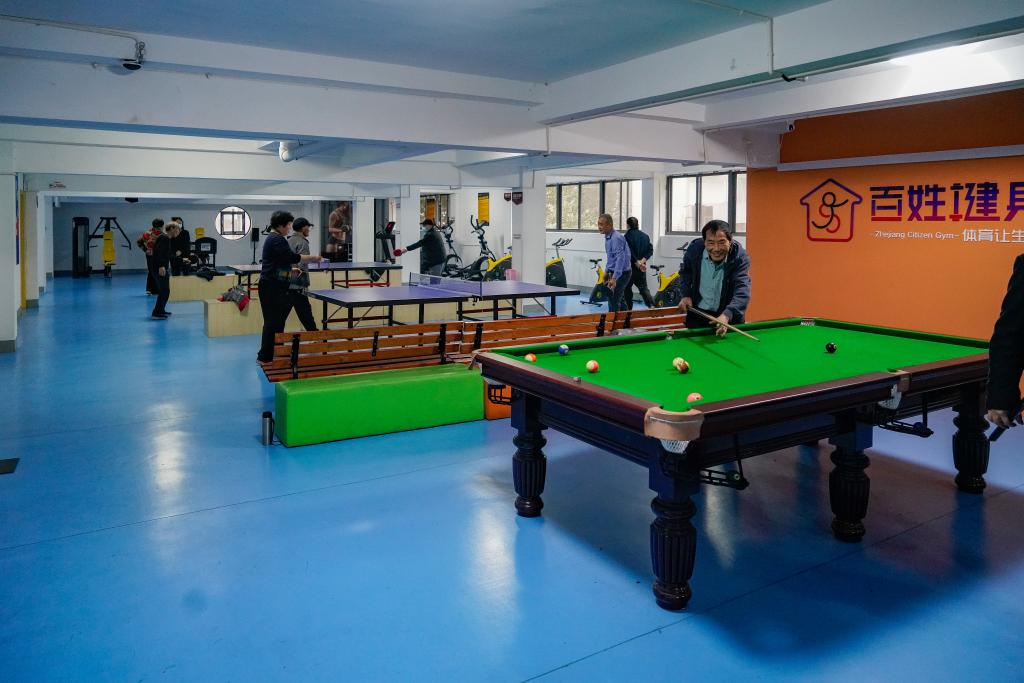 该小区配有500多平方米的健身馆,操房、乒乓球台、跑步机等设施一应俱全。此类体育用房在宁波属于“标配”,近年来宁波相继出台多份行政规范性文件和地方标准,以立法推进新建住宅小区配建室内体育健身用房。截至目前,宁波市中心城区共有409个新建小区实现体育配建,新增室内健身场地11.5万平方米,惠及居住人口约45万人。
