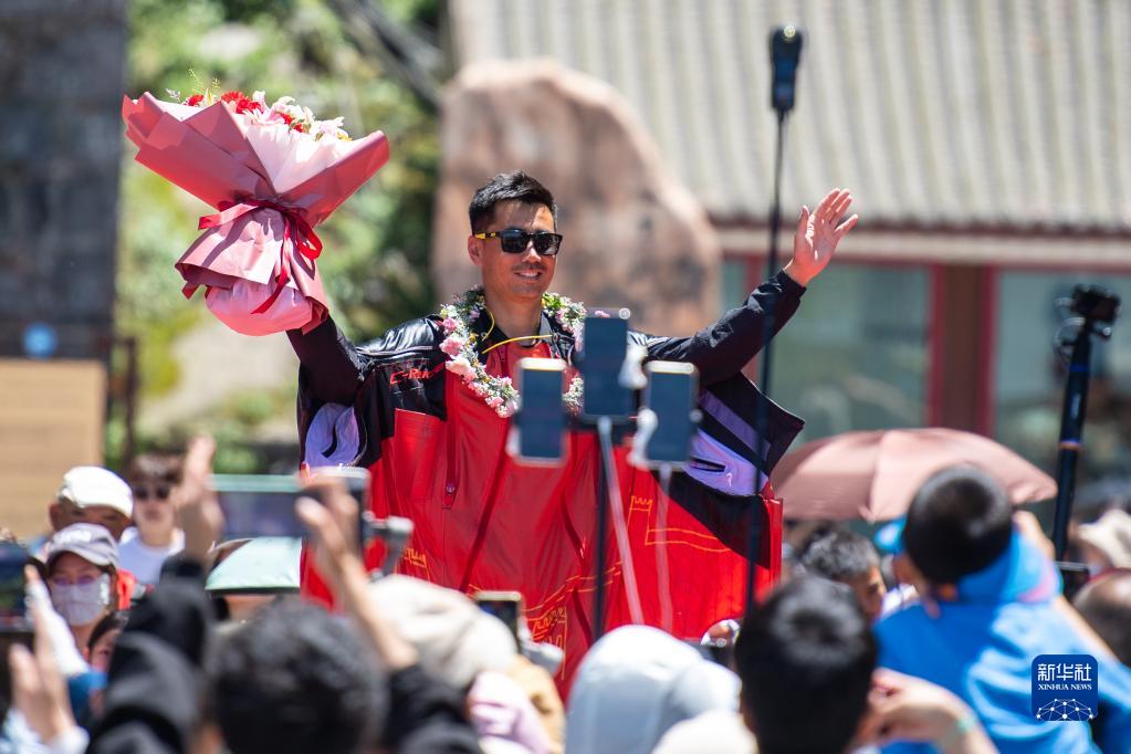 4月30日,张树鹏在成功完成挑战后庆祝。
