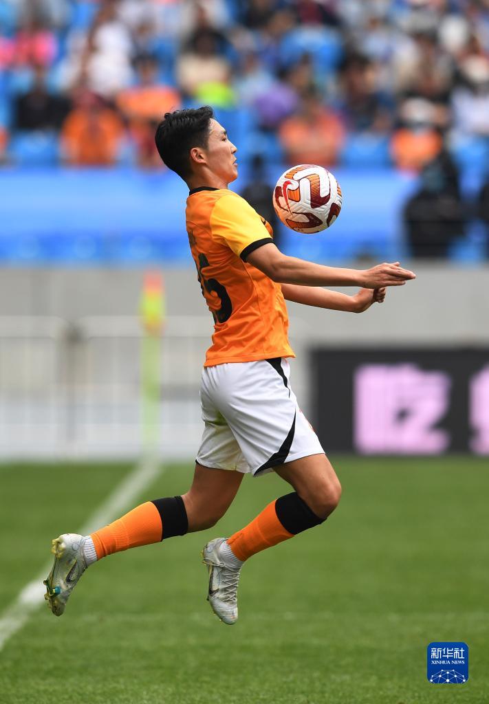 5月14日,青岛海牛队球员王建明在比赛中停球。新华社记者 李紫恒 摄
