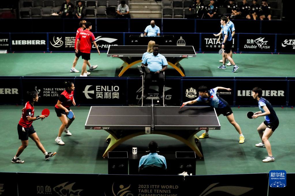 当日,在南非德班进行的2023年世界乒乓球锦标赛女子双打第二轮比赛中,中国组合孙颖莎/王曼昱以3比0战胜印度组合斯莉嘉·阿库拉/迪亚·帕拉戈·奇塔莱,晋级16强。