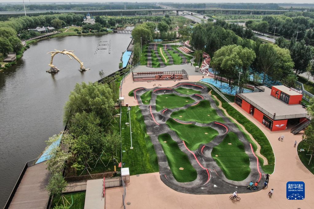 5月27日,市民在沈阳国际泵道公园内进行体验(无人机照片)。新华社记者 潘昱龙 摄