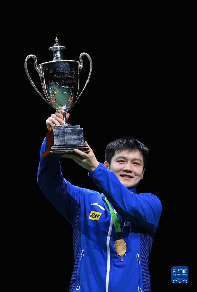 5月28日,樊振东捧杯留影。新华社记者 陶希夷 摄