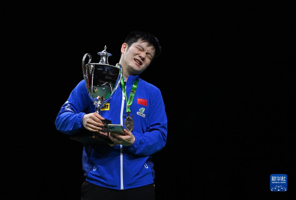 当日,在南非德班进行的2023年世界乒乓球锦标赛男子单打决赛中,中国选手樊振东以4比2战胜队友王楚钦,夺得冠军。