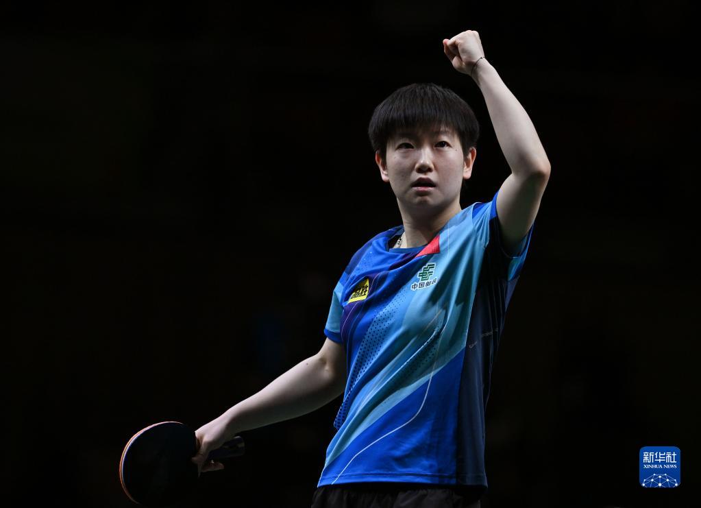 5月28日,孙颖莎庆祝得分。新华社记者 陶希夷 摄