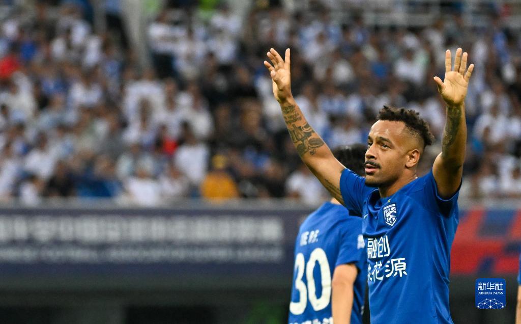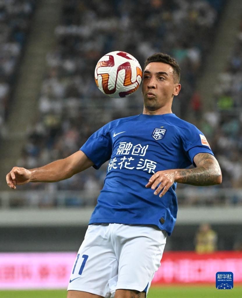 6月4日,武汉三镇队球员戴维森在比赛中。新华社记者 孙凡越 摄