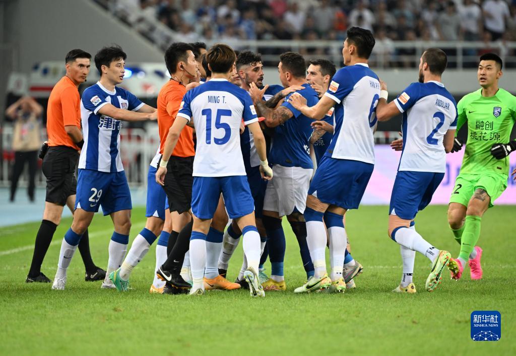 6月4日,双方球员在比赛中发生冲突。新华社记者 李然 摄
