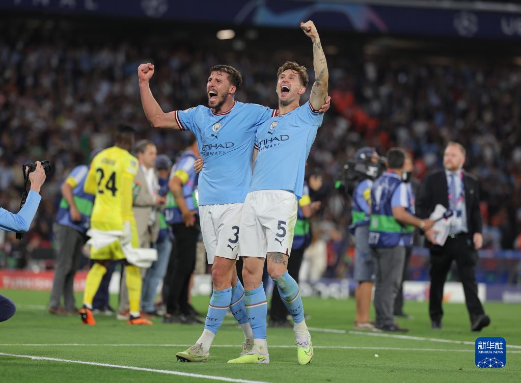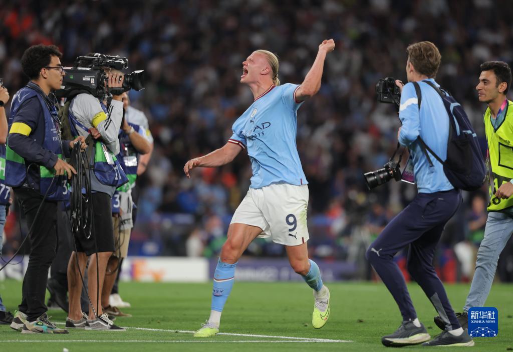 当日,在土耳其伊斯坦布尔举行的2022-2023赛季欧洲足球冠军联赛决赛中,英超曼彻斯特城队以1比0战胜意甲国际米兰队,夺得冠军。曼城队本赛季同时赢得欧冠、英超、足总杯冠军,成就“三冠王”。