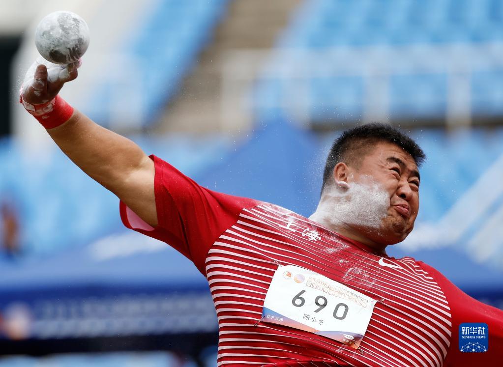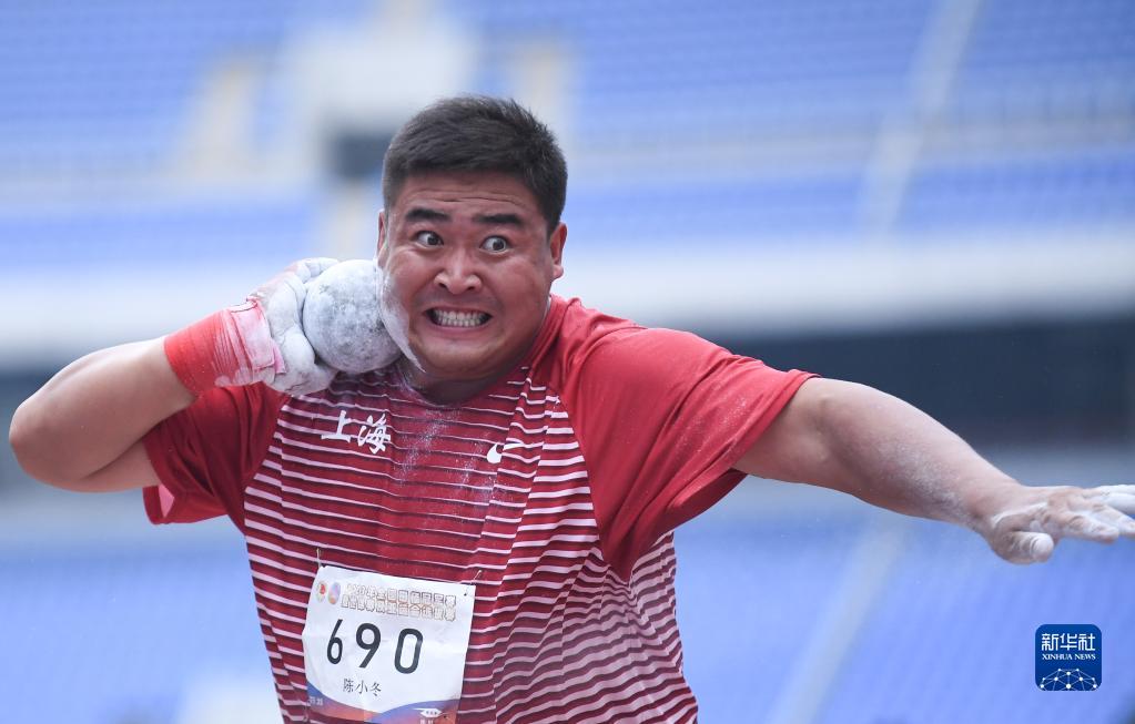 6月29日,上海队选手陈小冬在男子铅球决赛中。新华社记者 王丽莉 摄