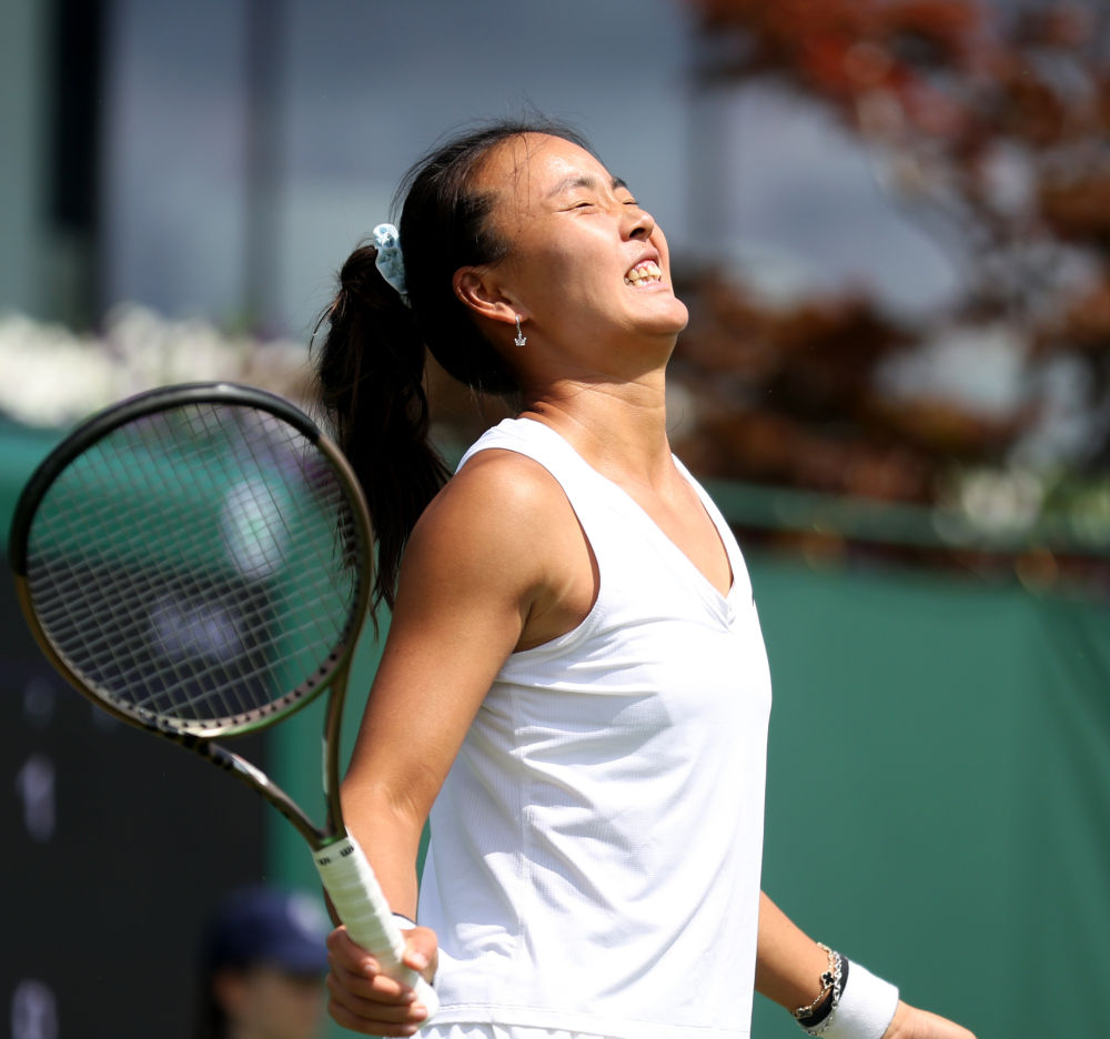 7月3日,袁悦在比赛中失分后。新华社记者 李颖 摄