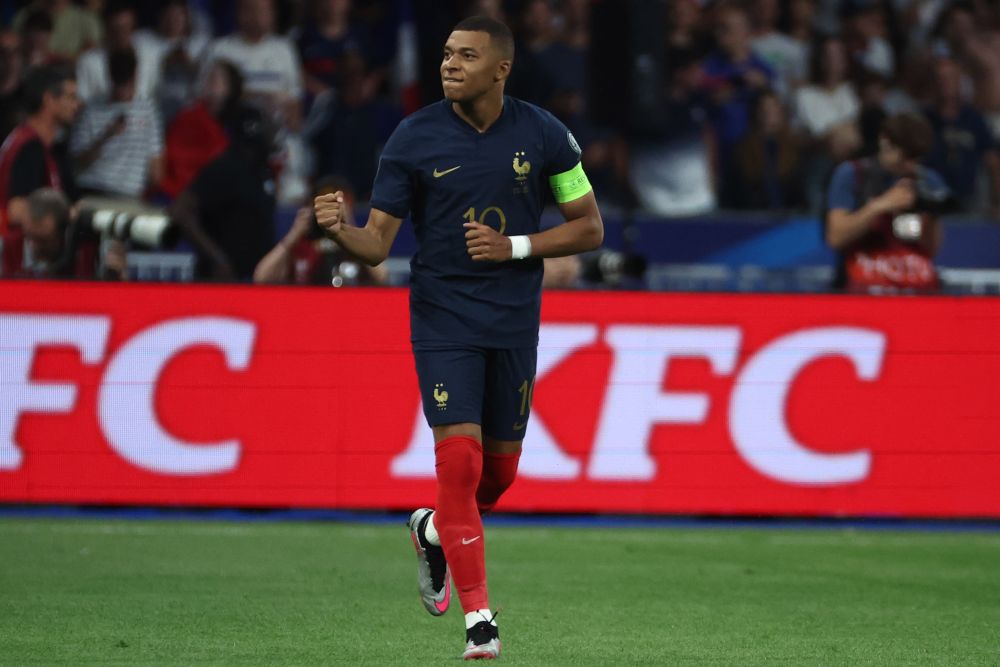 图为6月19日,法国队球员姆巴佩在欧锦赛预选赛中庆祝入球。新华社/欧新