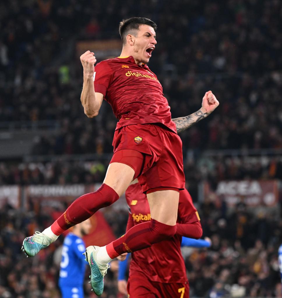 2月4日,罗马队球员伊巴涅斯在比赛中庆祝进球。新华社发(阿尔贝托·林格利亚摄)