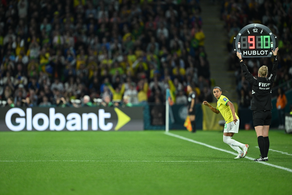 7月29日,巴西队球员玛塔在比赛中替补出场。新华社记者李一博摄