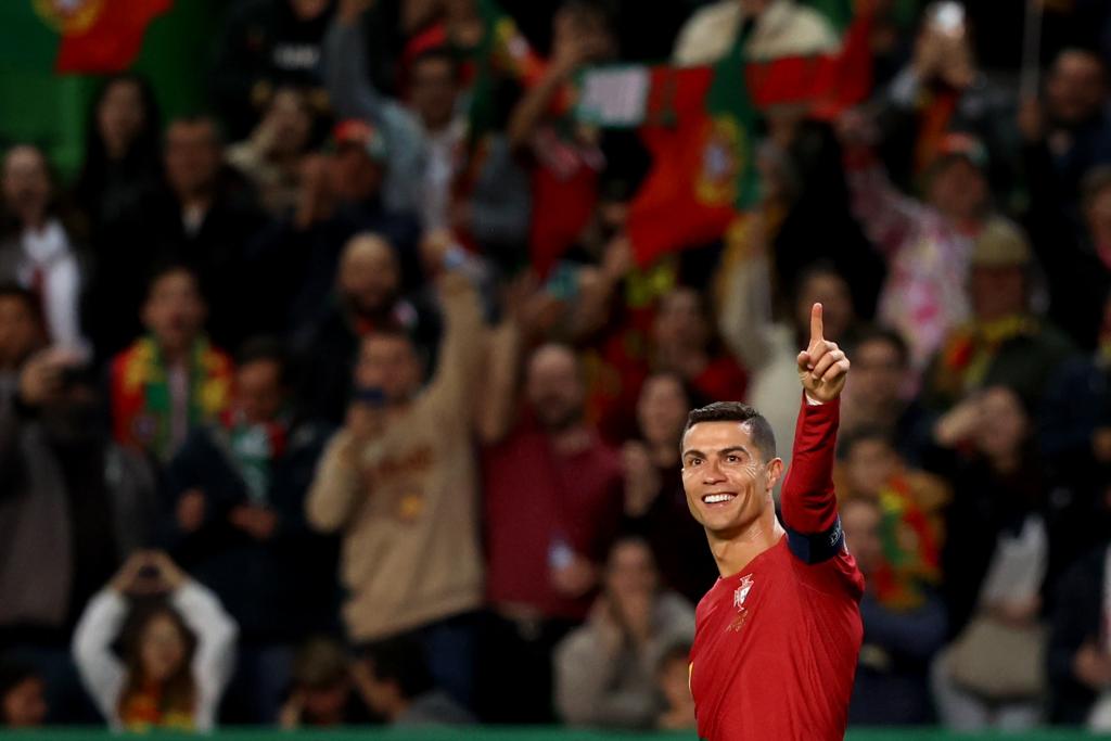 3月23日,欧锦赛预选赛,葡萄牙队球员克·罗纳尔多在比赛中射中点球后庆祝。新华社发(佩德罗·菲乌萨摄)