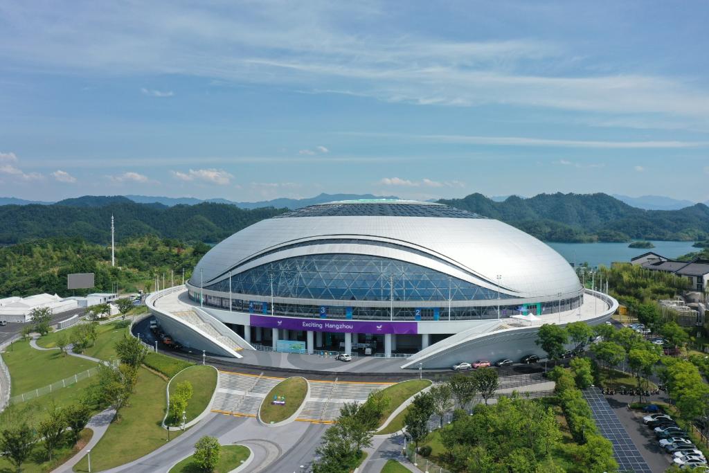 走进自行车馆内,映入眼帘的是椭圆形的屋盖。“这个屋盖罩棚最长达132米、高32米,是国内少见、也是淳安有史以来最大跨度的钢结构体系设计。”杭州亚运会淳安县赛事指挥部场馆设施运维副主任王轩介绍,屋面上还嵌有一扇扇三角形“小窗”,能让自然光进入场馆,并在必要时打开便于通风。