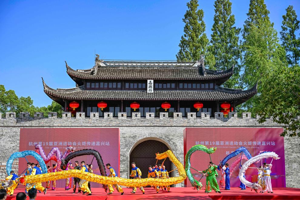 9月10日,杭州亚运会火炬传递嘉兴站举行文艺表演。新华社记者孙非摄