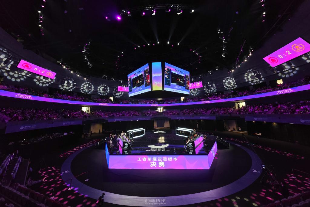 这是5月21日在杭州电竞中心拍摄的“韵味杭州”电子竞技全国邀请赛王者荣耀亚运版决赛现场。新华社记者黄宗治摄
