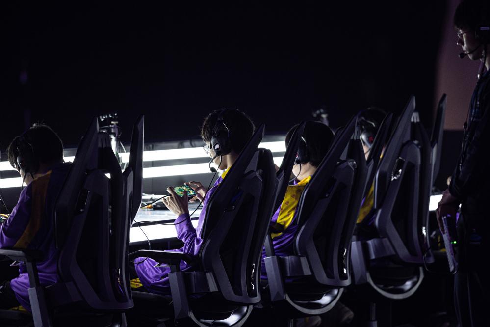 5月21日,南京Hero久竞队选手在比赛中。当日,在杭州电竞中心举行的“韵味杭州”电子竞技全国邀请赛王者荣耀亚运版决赛中,成都AG超玩会队以3:2战胜南京Hero久竞队,获得冠军。新华社记者吴壮摄