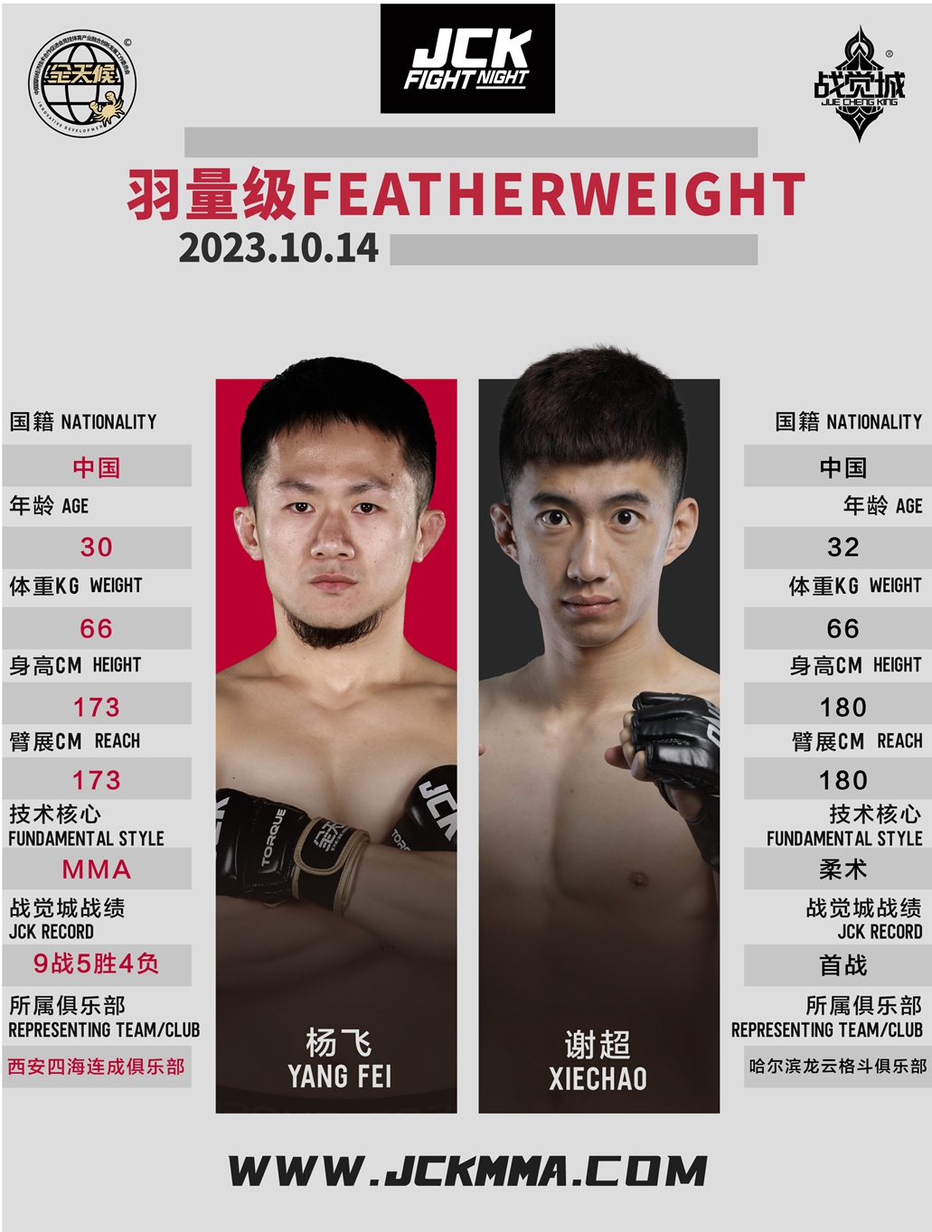 联合主赛羽量级 | 杨飞 VS 谢超