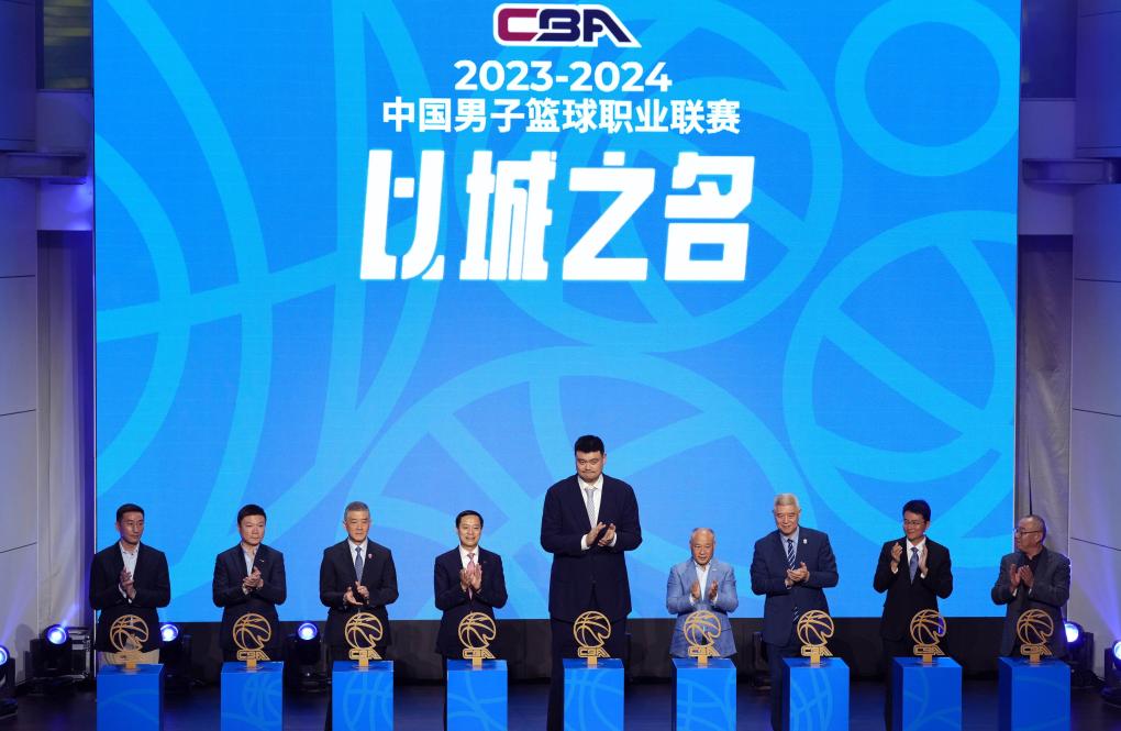 10月12日,嘉宾在启动仪式上。当日,2023-2024中国男子篮球职业联赛(CBA)新闻发布会在北京举行。新华社记者 孟永民 摄