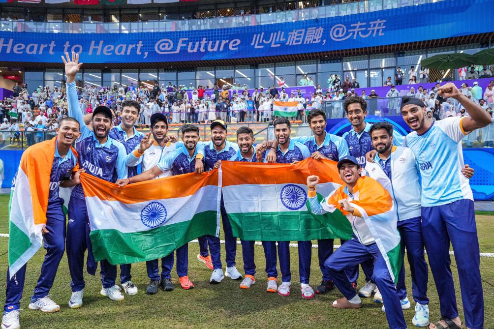 印度男子板球队在杭州亚运会上。新华社记者 孙非 摄
