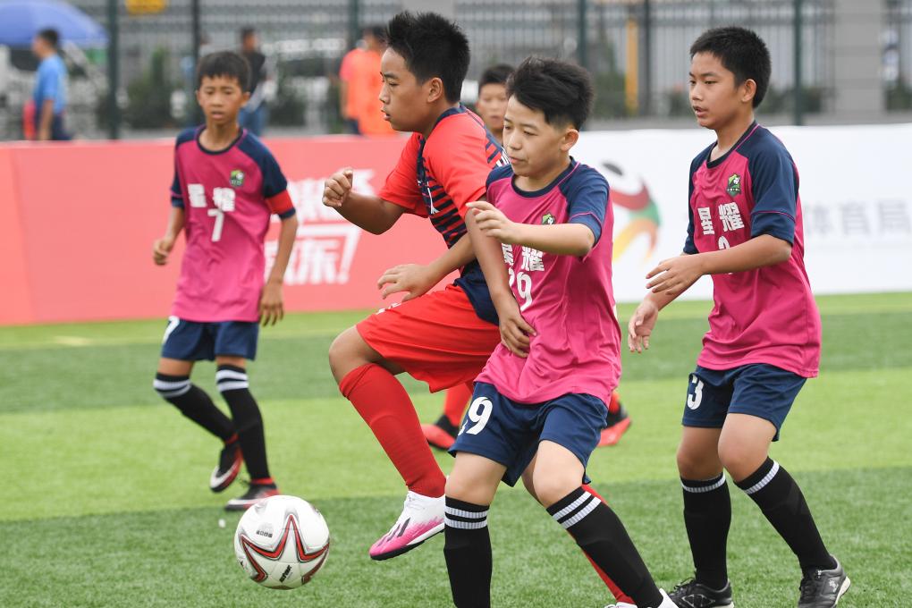资料图:2020年8月15日,2020年百队杯足球赛U13男子组比赛进行中。新华社记者 鞠焕宗 摄