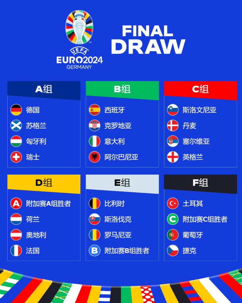 附加赛6场半决赛将于2024年3月21日进行,三场决赛定于3月26日进行。随着抽签揭晓,欧锦赛揭幕战也随之确定。2024年6月14日,东道主德国队将在慕尼黑迎战苏格兰队。