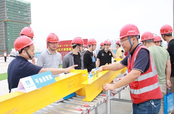 日前,佛山市建筑施工承插型盘扣式钢管脚手架观摩会在中建五局华南公司三龙湾(潭村)九年一贯制学校项目举行,500余名佛山市住建局、安全监督机构、施工企业代表参加。
