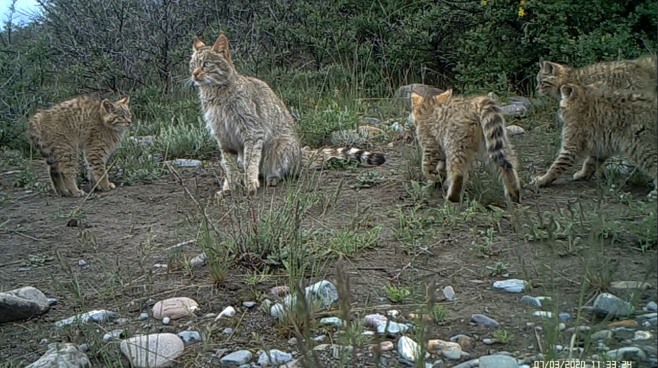 这是布设在祁连山国家公园青海片区的红外相机拍摄到的荒漠猫同框画面(2020年7月3日摄)(祁连山国家公园青海省管理局供图)