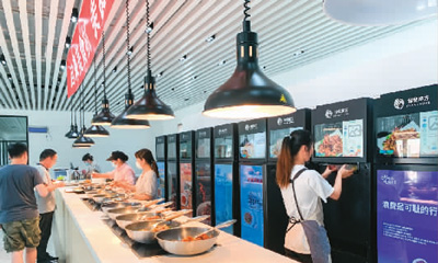 8月中旬的一天上午,在山东青岛市即墨经济开发区科创中心,一个名为“味来逸站”的机器人餐厅座无虚席,大厅内一侧,数台外观酷似冰箱的美食机器人“一”字排开。客人点完餐后,餐厅员工将相应菜品和作料配比好,“交给”美食机器人,而后扫描食材餐盒上的二维码,关上门,点击“系统启动”,美食机器人就开始“烹饪”,不到10分钟,味道鲜美、颜色诱人的鱼香肉丝、腰果翡翠虾仁、麻辣小龙虾等菜品就烹制完成,摆上餐桌。
