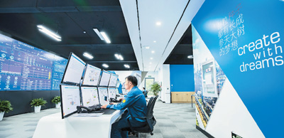 9月3日,在安徽省欣创节能环保科技股份有限公司智慧环控中心,员工正在对环保设施实时监控。罗继胜摄(人民视觉)