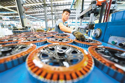 9月9日,河北省唐山市芦台经济开发区一家“专精特新”电机制造企业的工人在生产线上操作。董 军摄(新华社发)