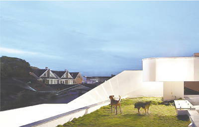 走进巴西东南部城市库里蒂巴的豪尔社区,街道两旁整齐的深色房屋中,一座风格简约的纯白色房屋分外抢眼。走上前,率先映入眼帘的便是屋顶上一片生机盎然的绿色。