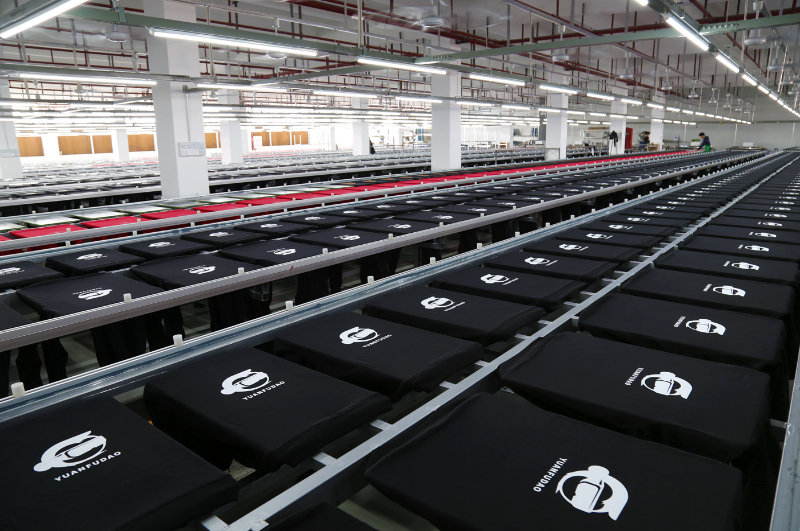 相比于其他的源头工厂,厦门高定在行业内可谓是“高配玩家”——它的柔性供应链体系领先行业水平。“我们工厂真正实现了柔性定制。”王健介绍说,小到1件、大到几千上万件的订单需求,厦门搞定都可以在3-7天完成。