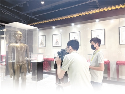 工作人员在广东佛山拍摄AR(增强现实)数字博物馆展示素材。