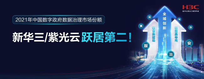 近日,国际市场调研机构IDC发布了最新的《中国数字政府数据治理市场厂商份额,2021》,紫光股份旗下新华三集团和紫光云以5.9%的市场份额位居中国市场第二位,展现了新华三在赋能数据资源开发利用,推动政府治理体系和治理能力现代化上的实力与价值。