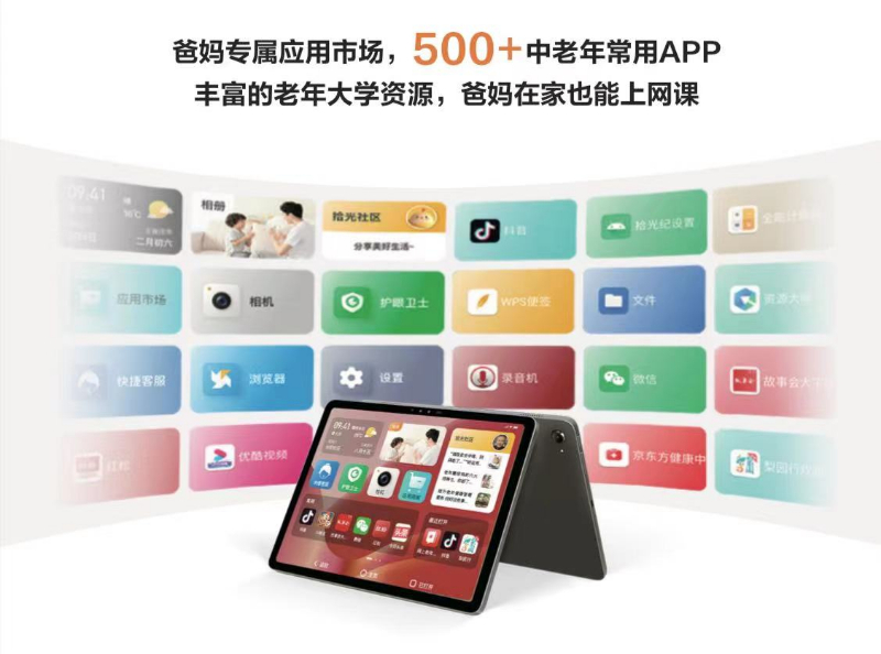 通过拾光纪Y1,爸妈可以体验超过500款量身定制的长辈专属应用,例如梨园行、故事会大字版、红松老年大学、美篇等等,让日子更加充实、退休生活更加丰富多彩。同时,他们也可以和年轻人一样安装微信、抖音、天猫等软件,畅享网上冲浪、网上购物的快感。