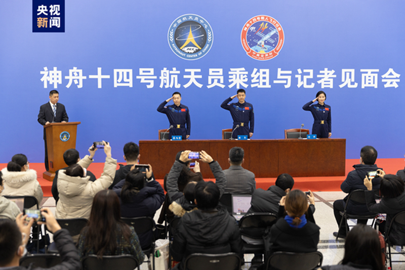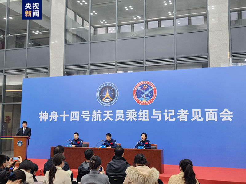 2023年2月17日下午,在神舟十四号航天员乘组返回75天后,中国航天员中心在北京航天城举行乘组与记者见面会。