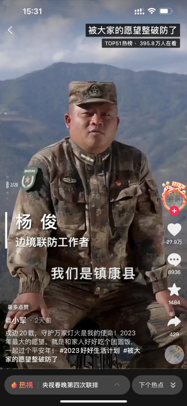 近日,《2023好好生活计划》暖心上线,聚焦来自不同城市、不同行业的“普通人”。这些人里有武汉医生、边境联防工作者、建筑工人、外卖小哥、网约车司机、农村合作社支书、大排档小老板、电商从业者、普通演员……在这支片子里,他们分享了2022年的遗憾和快乐,同时表达了对2023年的期盼和祝福。仅在两天时间,《2023好好生活计划》便获得千万级别播放量。