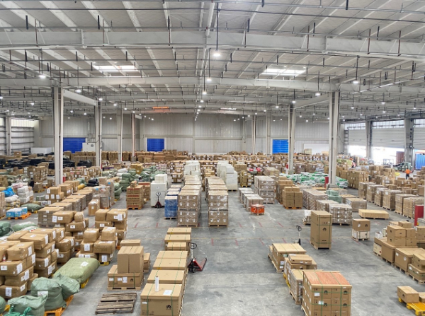 阿里捐赠的第二批救援物资在仓库整装待发。