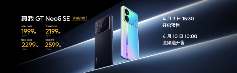 4月3日,真我realme发布真我GT Neo5 SE新品。作为真我GT Neo5系列的新产品搭载第二代骁龙7+旗舰芯,带来性能越级表现,首发价格1999元起。