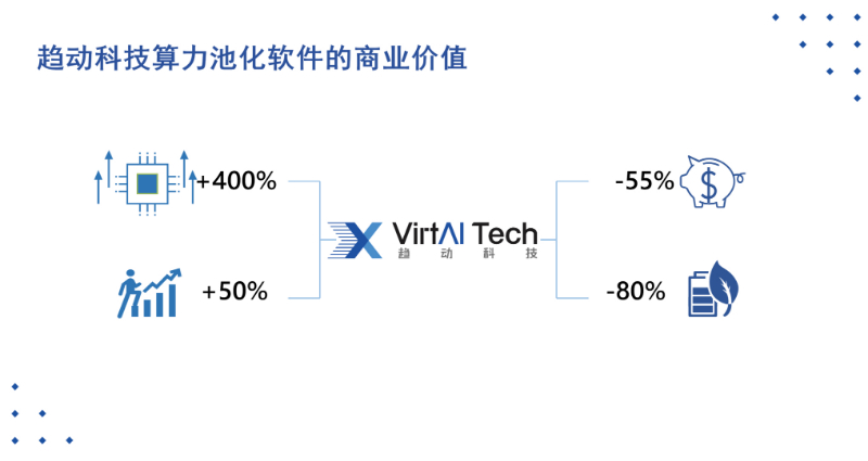 据了解,趋动科技现在平均每年可以将AI资源利用率提高4倍,将算法工程师的人效提高50%,让客户的总体运营成本下降55%,并减少75%的用电量,可以说是以软件的形式实现了硬件的功能。