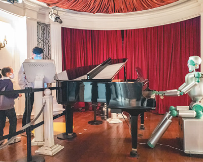 在上海科技馆,游客观看机器人弹琴。王 初摄(人民图片)
